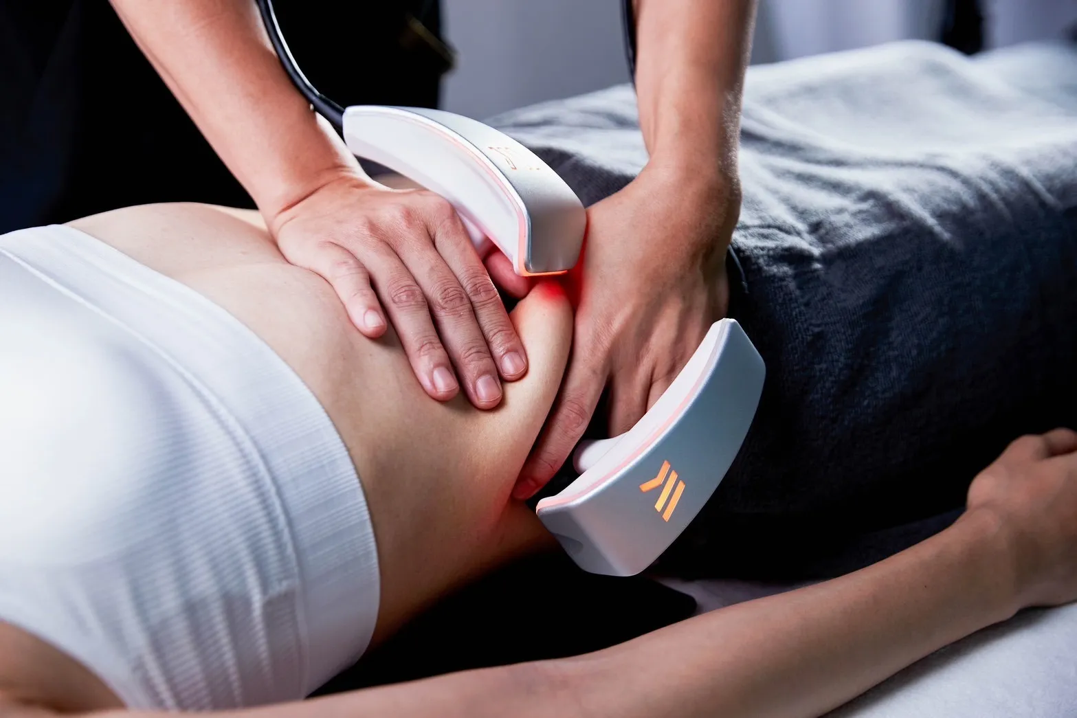 ただ温めるだけの機械ではなく、“深さを変えて狙える”のが最大の魅力。高周波、中周波、低周波が体の深部まで届くことで、内臓周りの巡りを整え、冷えて固まった脂肪や筋膜のこわばりをゆるめてくれます。これにより、代謝が上がりやすくなり、ぽっこりお腹の原因になりやすい内臓脂肪にもアプローチ。 さらに、表層〜中層にかけてはじんわり脂肪を柔らかくし、皮下脂肪の厚み・むくみ・ハリ感にも効果的。深部と表層の両方を同時にケアできるから、ラインの変化が早く、戻りにくいスッキリ感が続きます。 WINBACKはとても優秀なWアプローチ機器です。